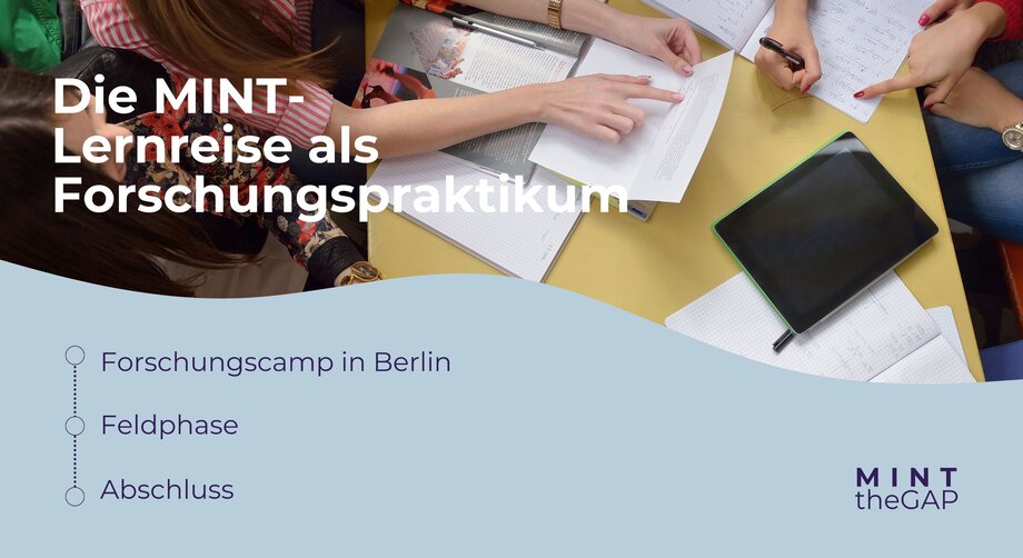 Die MINT-Lernreise ist Teil des Projekts MINT the GAP. Ziel des Projekts ist es, Schülerinnen in einer frühen Phase der Studien- und Berufsorientierung Forschung erfahrbar zu machen und Kompetenzen für zukünftig relevante Studien- und Berufsfelder zu fördern.